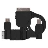 В комплект входит кабель и три переходника для разных устройств, таких как: Samsung, Nokia, BlackBerry, LG, HTC, Motorola, iPhone 4S, 4, 3GS, 3G, iPod и другие.